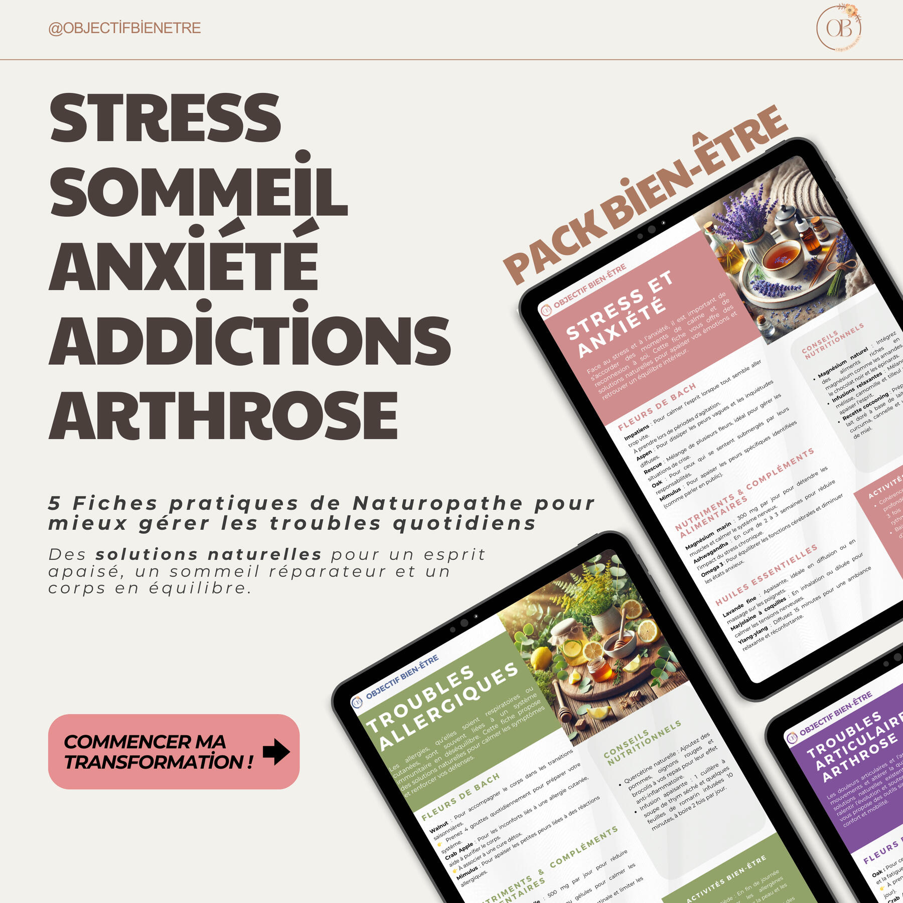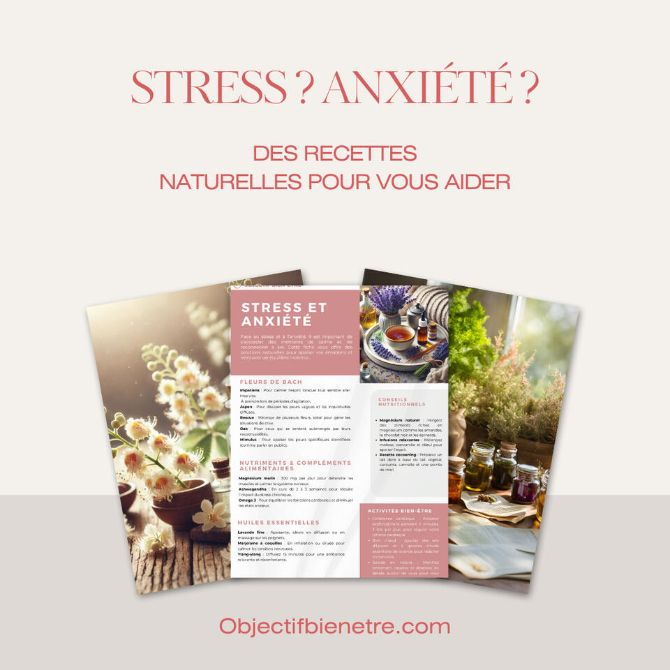 Pour vous accompagner dans votre démarche de bien-être, nous vous offrons une fiche exclusive : "5 Astuces Naturelles pour Gérer le Stress au Quotidien". Inscrivez-vous maintenant pour la recevoir immédiatement dans votre boîte mail.